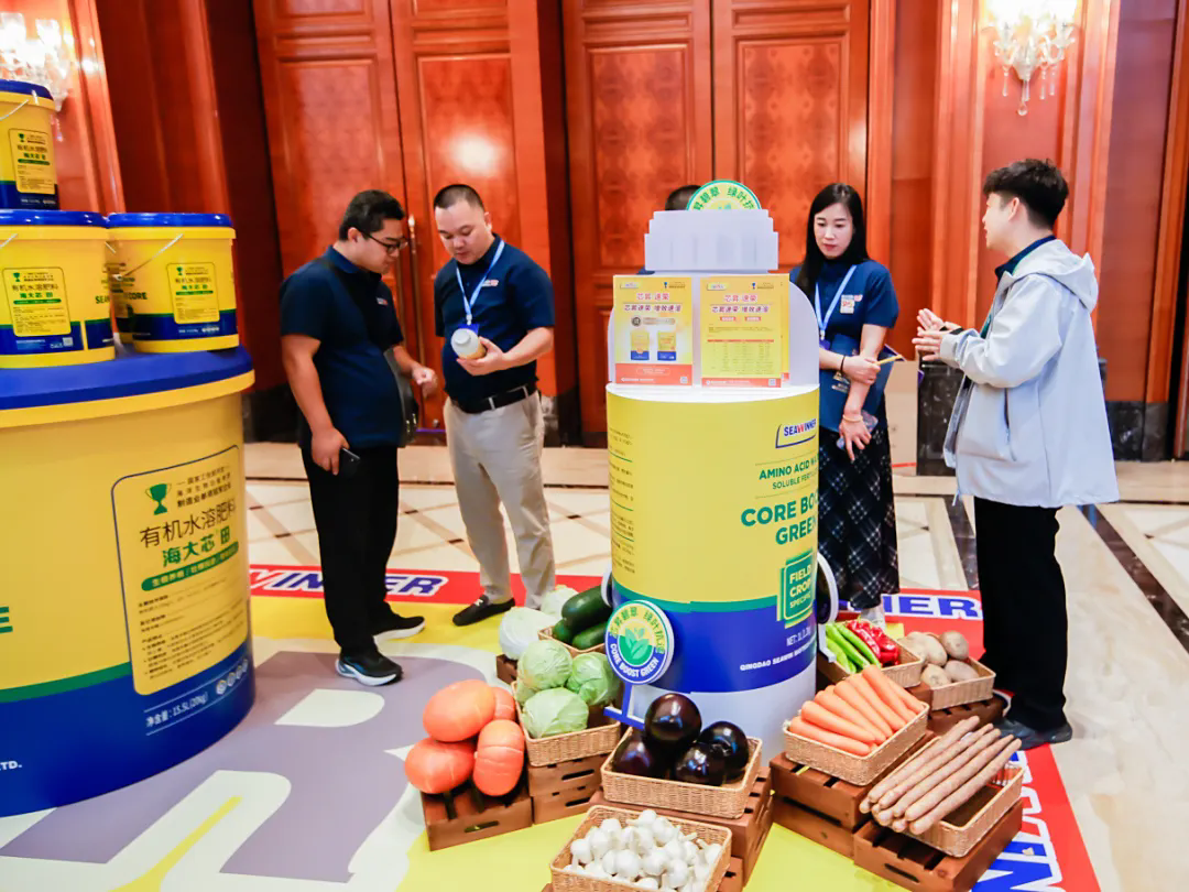 此外,峰会现场设有产品展示、洽谈交流区,应用德晋贵宾厅集团最“芯”科技,集中呈现了德晋贵宾厅海状元海藻肥、温喜鱼蛋白肽、海谷特、传奇以及出口SEAWINNER品牌五大系列部分新产品,涵盖经作和大田区,继续引领特肥行业发展。